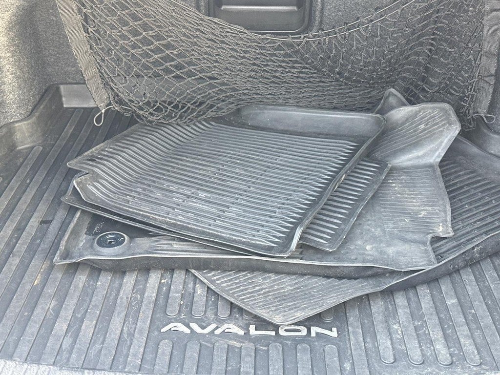 This Avalon is well equipped with All Weather Liner Package (All Weather Floor Liners and Cargo Tray), 6-Speed Automatic ECT-i, Navigation System, 11 Speakers, 4-Wheel Disc Brakes, ABS brakes, Air Conditioning, Alloy wheels, AM/FM radio: SiriusXM, Auto High-beam Headlights, Auto-dimming door mirrors, Auto-dimming Rear-View mirror, Automatic temperature control, Brake assist, Bumpers: body-color, CD player, Chrome wheels, Compass, Delay-off headlights, Driver door bin, Driver vanity mirror, Dual front impact airbags, Dual front side impact airbags, DVD-Audio, Electronic Stability Control, Emergency communication system: Safety Connect, Exterior Parking Camera Rear, Four wheel independent suspension, Front anti-roll bar, Front Bucket Seats, Front Center Armrest, Front dual zone A/C, Front reading lights, Fully automatic headlights, Garage door transmitter: HomeLink, Heated door mirrors, Heated front seats, Heated rear seats, High-Intensity Discharge Headlights, Illuminated entry, Knee airbag, Leather steering wheel, Low tire pressure warning, Lower Door Moldings, Memory seat, Multi-Stage Heated & Ventilated Front Bucket Seats, Occupant sensing airbag, Outside temperature display, Overhead airbag, Overhead console, Panic alarm, Passenger door bin, Passenger vanity mirror, Power door mirrors, Power driver seat, Power moonroof, Power passenger seat, Power steering, Power windows, Premium Perforated Leather Seat Trim, Radio data system, Radio: Entune Premium JBL Audio w/Integrated Nav, Rain sensing wipers, Rear air conditioning, Rear anti-roll bar, Rear reading lights, Rear seat center armrest, Rear side impact airbag, Rear Window Blind, Rear window defroster, Remote Engine Starter, Remote keyless entry, Security system, Speed control, Speed-sensing steering, Speed-Sensitive Wipers, Steering wheel mounted audio controls, Tachometer, Telescoping steering wheel, Tilt steering wheel, Traction control, Trip computer, Turn signal indicator mirrors, Variably intermittent wipers, Ventilated front seats, and Wheels: 18" x 7.5" Super Chrome Alloy.