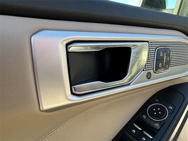 This Explorer is well equipped with Class III Trailer Tow Package, Equipment Group 300A, 4WD, Navigation System, 12 Speakers, 20 Premium Painted Aluminum Wheels, 3.58 Non-Limited-Slip Rear Axle Ratio, 3rd row seats: bench, 4-Wheel Disc Brakes, ABS brakes, Air Conditioning, Alloy wheels, AM/FM radio: SiriusXM, Auto High-beam Headlights, Auto-dimming Rear-View mirror, Automatic temperature control, Brake assist, Bumpers: body-color, Cargo Mat (Dealer Installed), Compass, Delay-off headlights, Driver door bin, Driver vanity mirror, Dual front impact airbags, Dual front side impact airbags, Electronic Stability Control, Emergency communication system: SYNC 3 911 Assist, Exterior Parking Camera Rear, FordPass Connect, Four wheel independent suspension, Front & Second Row Floor Liners, Front anti-roll bar, Front Bucket Seats, Front Center Armrest, Front dual zone A/C, Front fog lights, Front reading lights, Fully automatic headlights, Garage door transmitter: HomeLink, Heated door mirrors, Heated front seats, Heated rear seats, Heated steering wheel, Illuminated entry, Knee airbag, Leather Heated/Ventilated Captain's Chairs, Leather steering wheel, Low tire pressure warning, Memory seat, Occupant sensing airbag, Outside temperature display, Overhead airbag, Overhead console, Panic alarm, Passenger door bin, Passenger vanity mirror, Power door mirrors, Power driver seat, Power Liftgate, Power passenger seat, Power steering, Power windows, Radio data system, Radio: B&O Sound System by Bang & Olufsen, Rain sensing wipers, Rear air conditioning, Rear anti-roll bar, Rear reading lights, Rear window defroster, Rear window wiper, Remote keyless entry, Roof rack: rails only, Security system, Speed control, Speed-sensing steering, Speed-Sensitive Wipers, Split folding rear seat, Spoiler, Steering wheel memory, Steering wheel mounted audio controls, SYNC 3 Communications & Entertainment System, SYNC 3/Apple CarPlay/Android Auto, Tachometer, Telescoping steering wheel, Tilt steering wheel, Traction control, Trip computer, Turn signal indicator mirrors, Twin Panel Moonroof, Variably intermittent wipers, Ventilated front seats, Voice-Activated Touchscreen Navigation System, and Wheels: 20 Hand Polished Aluminum.