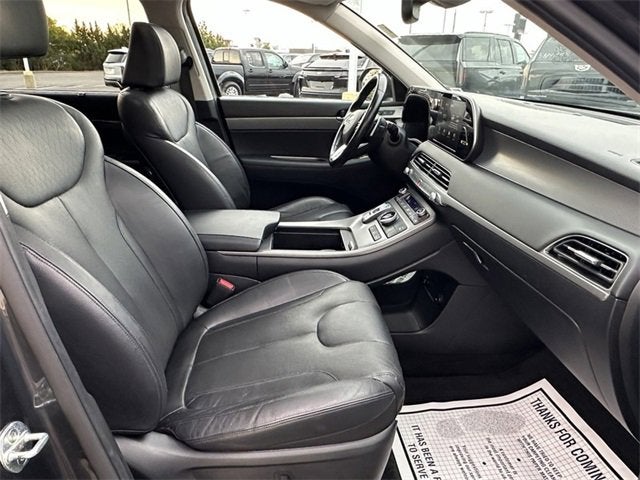 This Palisade is well equipped with Convenience Package P2 (115-Volt AC Power Outlet, 3rd Row USB Outlets, 7 High Resolution Cluster Display, Auto Leveling Rear Suspension, Hands-Free Smart Liftgate w/Auto Open, LED Taillights, Parking Distance Warning - Forward, Rear Side Window Sunshades, Ultrasonic Rear Seat Occupant Minder, Wheels: 20x 7.5J Split 5-Spoke Machined Alloy, and Wireless Phone Charger), Premium & 8-Seat (8-Passenger Bench Seating P4 and Power Sunroof P5), Premium Package P3 (8-Way Power Adjustable Passenger Seat, Artificial Leather-Wrapped Dashboard, Bi-LED Headlights, Heated 2nd Row Seats, Heated Steering Wheel, Integrated Memory System, Leather Seat Trim, and Power 3rd Row Seating), 3.648 Axle Ratio, 3rd row seats: split-bench, 4-Wheel Disc Brakes, 6 Speakers, ABS brakes, Air Conditioning, Alloy wheels, AM/FM radio, Apple CarPlay & Android Auto, Auto High-beam Headlights, Auto-dimming Rear-View mirror, Automatic temperature control, Brake assist, Bumpers: body-color, Cargo Tray, Carpeted Floor Mats, Delay-off headlights, Driver door bin, Driver vanity mirror, Dual front impact airbags, Dual front side impact airbags, Electronic Stability Control, First Aid Kit, Four wheel independent suspension, Front anti-roll bar, Front Bucket Seats, Front Center Armrest, Front dual zone A/C, Front reading lights, Fully automatic headlights, Garage door transmitter: HomeLink, Heated door mirrors, Heated Front Bucket Seats, Heated front seats, Illuminated entry, Knee airbag, Low tire pressure warning, Mudguards, Occupant sensing airbag, Outside temperature display, Overhead airbag, Overhead console, Panic alarm, Passenger door bin, Passenger vanity mirror, Power door mirrors, Power driver seat, Power steering, Power windows, Radio data system, Radio: AM/FM/MP3 Display Audio, Rear air conditioning, Rear anti-roll bar, Rear window defroster, Rear window wiper, Reclining 3rd row seat, Remote keyless entry, Security system, Speed control, Speed-sensing steering, Split folding rear seat, Spoiler, Stain Resistant Cloth Seat Trim, Steering wheel mounted audio controls, Tachometer, Telescoping steering wheel, Tilt steering wheel, Traction control, Trip computer, Turn signal indicator mirrors, Variably intermittent wipers, and Wheels: 18 x 7.5J Machine Finish Alloy.