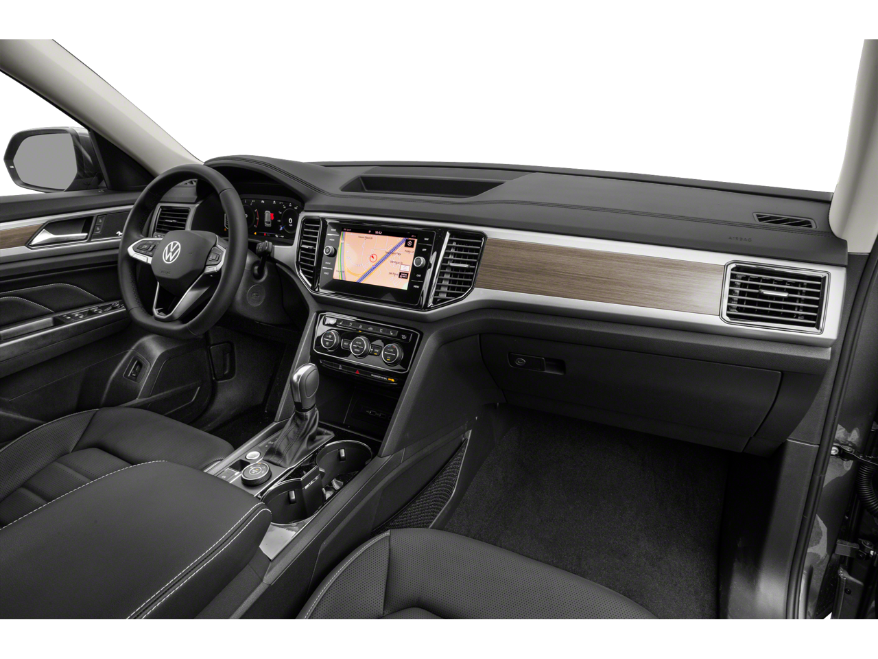 This Atlas is well equipped with 12 Speakers, 2nd-Row Dual Captain's Chairs, 3.60 Axle Ratio, 3rd row seats: split-bench, 4-Wheel Disc Brakes, ABS brakes, Air Conditioning, Alloy wheels, Auto High-beam Headlights, Auto-dimming Rear-View mirror, Automatic temperature control, Brake assist, Bumpers: body-color, Compass, Delay-off headlights, Driver door bin, Driver vanity mirror, Dual front impact airbags, Dual front side impact airbags, Electronic Stability Control, Emergency communication system: VW Car-Net services (capabilities require enrollment or subscription), Four wheel independent suspension, Front anti-roll bar, Front Bucket Seats, Front Center Armrest, Front dual zone A/C, Front fog lights, Front reading lights, Fully automatic headlights, Heated door mirrors, Heated front seats, Heated rear seats, Heated steering wheel, Heavy Duty Trunk Liner w/VW CarGo Blocks, Htd/Actively Ventilated Comfort Front Sport Seats, Illuminated entry, Leather Shift Knob, Low tire pressure warning, Memory seat, Navigation System, Occupant sensing airbag, Outside temperature display, Overhead airbag, Overhead console, Panic alarm, Passenger door bin, Passenger vanity mirror, Perforated Vienna Leather Seating Surfaces, Power door mirrors, Power driver seat, Power Liftgate, Power moonroof, Power passenger seat, Power steering, Power windows, Privacy Cover, Radio data system, Rain sensing wipers, Rear air conditioning, Rear anti-roll bar, Rear audio controls, Rear reading lights, Rear seat center armrest, Rear window defroster, Rear window wiper, Remote keyless entry, Roadside Assistance Kit, Roof rack: rails only, Rubber Mats Kit - Captain's Chairs, Security system, Speed control, Speed-sensing steering, Split folding rear seat, Spoiler, Standard Suspension, Steering wheel mounted audio controls, Tachometer, Telescoping steering wheel, Tilt steering wheel, Traction control, Trip computer, Turn signal indicator mirrors, Variably intermittent wipers, Ventilated front seats, and Wheels: 20" 5-Spoke 2-Tone Machined Alloy.