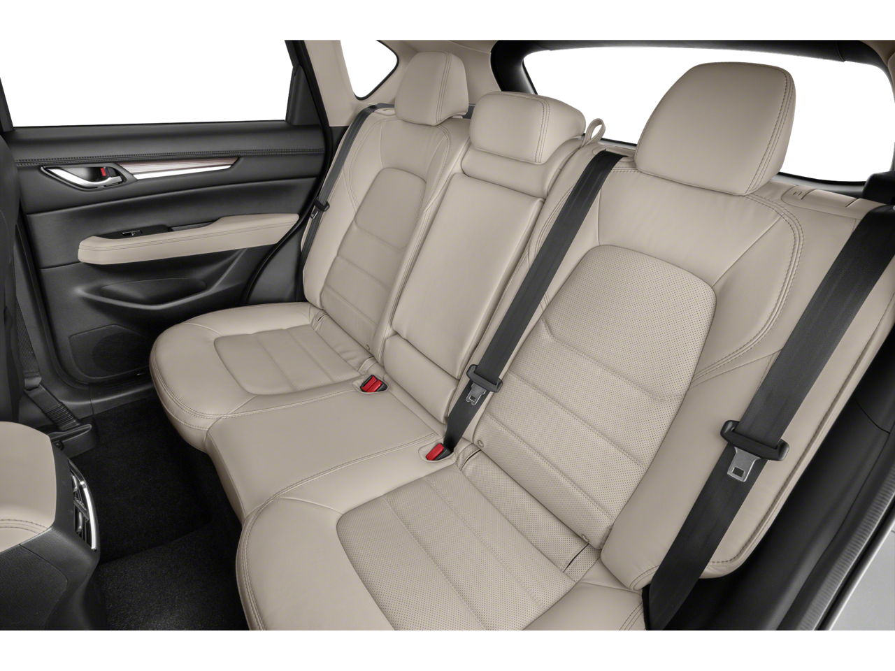 This Mazda CX-5 is well equipped with 4-Wheel Disc Brakes, 4.624 Axle Ratio, 6 Speakers, ABS brakes, Air Conditioning, Alloy wheels, AppLink/Apple CarPlay and Android Auto, Auto High-beam Headlights, Auto-dimming Rear-View mirror, Automatic temperature control, Brake assist, Bumpers: body-color, Delay-off headlights, Driver door bin, Driver vanity mirror, Dual front impact airbags, Dual front side impact airbags, E911 Automatic Emergency Notification, Electronic Stability Control, Emergency communication system: MAZDA CONNECT, Exterior Parking Camera Rear, Four wheel independent suspension, Front anti-roll bar, Front Bucket Seats, Front Center Armrest w/Storage, Front dual zone A/C, Front reading lights, Fully automatic headlights, Garage door transmitter: HomeLink, Heated door mirrors, Heated Front Bucket Seats, Heated front seats, Illuminated entry, Infotainment System Voice Command, Leather Seat Trim, Leather Shift Knob, Low tire pressure warning, Memory seat, Multifunction Commander Control, Occupant sensing airbag, Outside temperature display, Overhead airbag, Overhead console, Pandora, Panic alarm, Passenger door bin, Passenger vanity mirror, Power door mirrors, Power driver seat, Power moonroof, Power passenger seat, Power steering, Power windows, Premium audio system: Bose, Radio Broadcast Data System Program Information, Radio data system, Radio: AM/FM/HD Audio System, Rain sensing wipers, Rear anti-roll bar, Rear reading lights, Rear seat center armrest, Rear window defroster, Rear window wiper, Remote keyless entry, SMS Text Msg Audio Delivery & Reply, Snowflake White Pearl Mica Paint, Speed control, Speed-sensing steering, Split folding rear seat, Spoiler, Steering wheel mounted audio controls, Tachometer, Telescoping steering wheel, Tilt steering wheel, Traction control, Trip computer, Turn signal indicator mirrors, Variably intermittent wipers, and Wheels: 19" x 7J Aluminum Alloy.