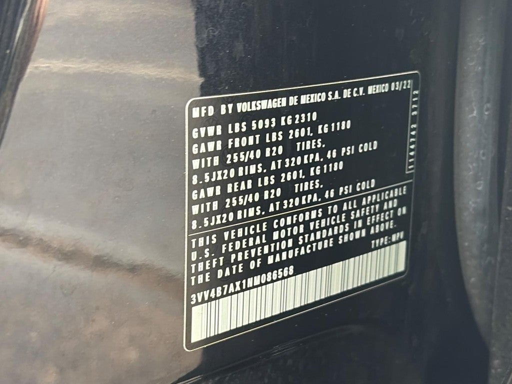 This Tiguan is well equipped with Volkswagen Certified Pre-Owned Certified, AWD, Navigation system: VW Car-Net Guide & Inform, 3.33 Axle Ratio, 4-Wheel Disc Brakes, 4-Wheel Independent Suspension, 8 Speakers, ABS brakes, Air Conditioning, Alloy wheels, AM/FM radio: SiriusXM with 360L, Auto High-beam Headlights, Auto-dimming Rear-View mirror, Automatic temperature control, Brake assist, Bumpers: body-color, Compass, Delay-off headlights, Driver door bin, Driver vanity mirror, Dual front impact airbags, Dual front side impact airbags, Electronic Stability Control, Emergency communication system: Car-Net, Four wheel independent suspension, Front anti-roll bar, Front Bucket Seats, Front Center Armrest, Front dual zone A/C, Front fog lights, Front reading lights, Fully automatic headlights, Heated door mirrors, Heated front seats, Heated steering wheel, Heated/Ventilated Front Comfort Sport Seats, Illuminated entry, Leather Shift Knob, Leather steering wheel, Low tire pressure warning, Memory seat, Occupant sensing airbag, Outside temperature display, Overhead airbag, Overhead console, Panic alarm, Passenger door bin, Passenger vanity mirror, Perforated Vienna Leather Seating Surfaces, Power door mirrors, Power driver seat, Power Liftgate, Power moonroof, Power passenger seat, Power steering, Power windows, Radio data system, Radio: MIB3 Discover Media AM/FM/HD, Rain sensing wipers, Rear anti-roll bar, Rear reading lights, Rear seat center armrest, Rear window defroster, Rear window wiper, Remote keyless entry, Roof rack: rails only, Security system, Speed control, Speed-sensing steering, Split folding rear seat, Spoiler, Sport steering wheel, Steering wheel mounted audio controls, Tachometer, Telescoping steering wheel, Tilt steering wheel, Traction control, Trip computer, Turn signal indicator mirrors, Variably intermittent wipers, Ventilated front seats, and Wheels: 20" Machined Black Alloy.