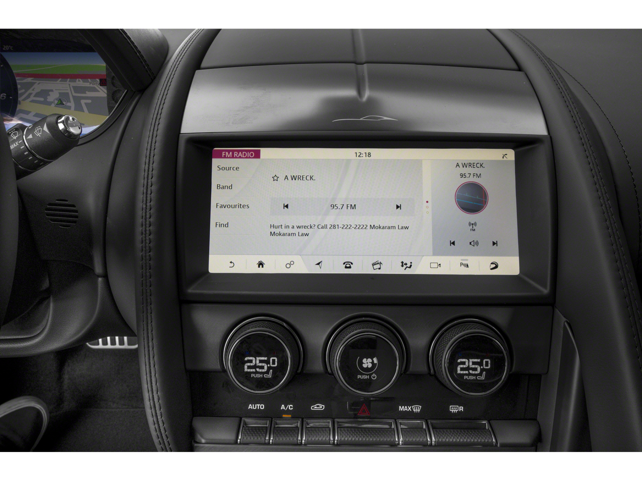 This F-TYPE is well equipped with Navigation System, 10 Speakers, 4-Wheel Disc Brakes, ABS brakes, Adaptive suspension, Air Conditioning, Alloy wheels, AM/FM radio: SiriusXM, Apple CarPlay/Android Auto, Auto High-beam Headlights, Auto tilt-away steering wheel, Auto-dimming door mirrors, Auto-dimming Rear-View mirror, Automatic temperature control, Brake assist, Bumpers: body-color, Delay-off headlights, Driver door bin, Driver vanity mirror, Dual front impact airbags, Dual front side impact airbags, Electronic Stability Control, Emergency communication system: Remote SOS Emergency Call, Exterior Parking Camera Rear, Four wheel independent suspension, Front anti-roll bar, Front Bucket Seats, Front Center Armrest, Front dual zone A/C, Front reading lights, Fully automatic headlights, Garage door transmitter: HomeLink, Grained Leather & Suedecloth Seating Surfaces, Heated door mirrors, Heated front seats, Heated steering wheel, Illuminated entry, Leather Shift Knob, Low tire pressure warning, Memory seat, Occupant sensing airbag, Outside temperature display, Overhead airbag, Overhead console, Panic alarm, Passenger door bin, Passenger vanity mirror, Power door mirrors, Power driver seat, Power Liftgate, Power passenger seat, Power steering, Power windows, Radio data system, Radio: Meridian 380W Audio System, Rain sensing wipers, Rear anti-roll bar, Rear fog lights, Rear window defroster, Remote keyless entry, Security system, Speed control, Speed-sensing steering, Spoiler, Sport 12-Way Electric & Heated Front Seats, Steering wheel memory, Steering wheel mounted audio controls, Tachometer, Telescoping steering wheel, Tilt steering wheel, Traction control, Trip computer, Turn signal indicator mirrors, Variably intermittent wipers, and Wheels: 20" Style 5060 5 Spoke Gloss Sparkle Silver.