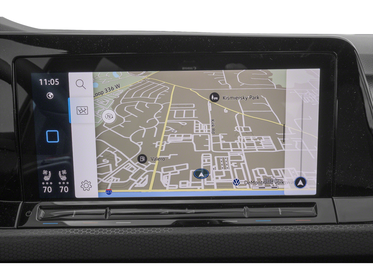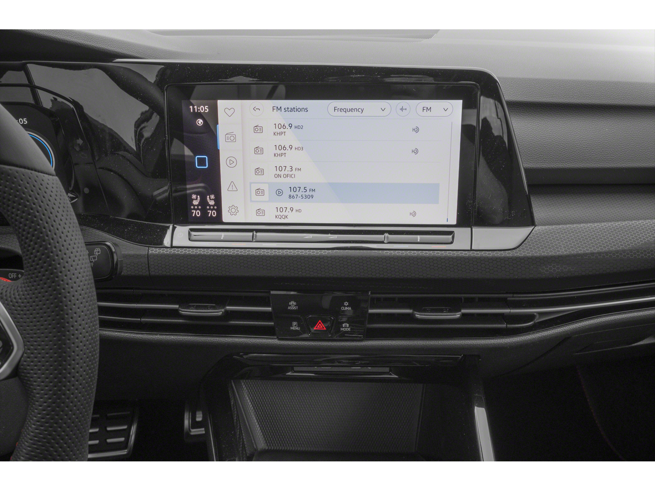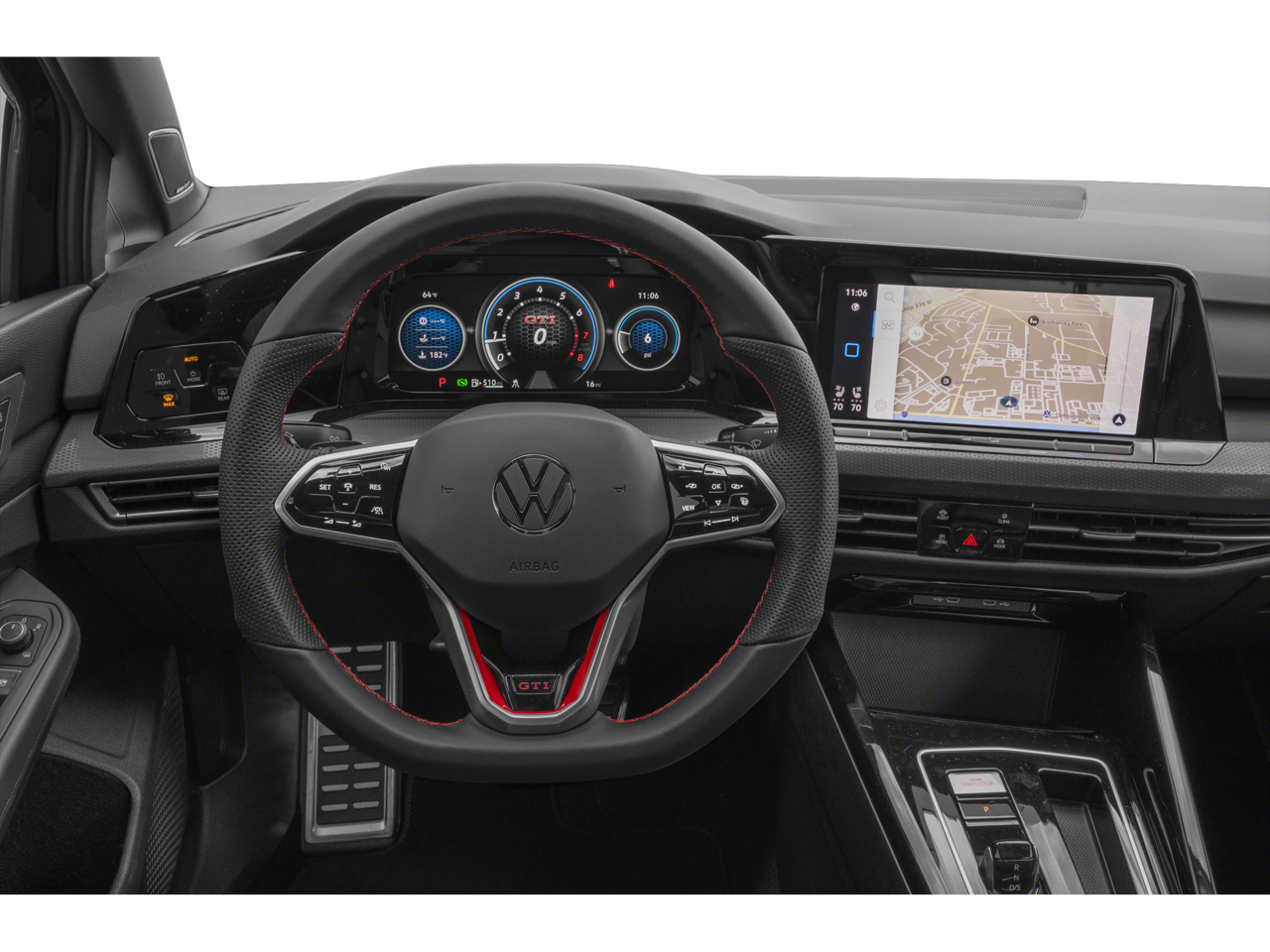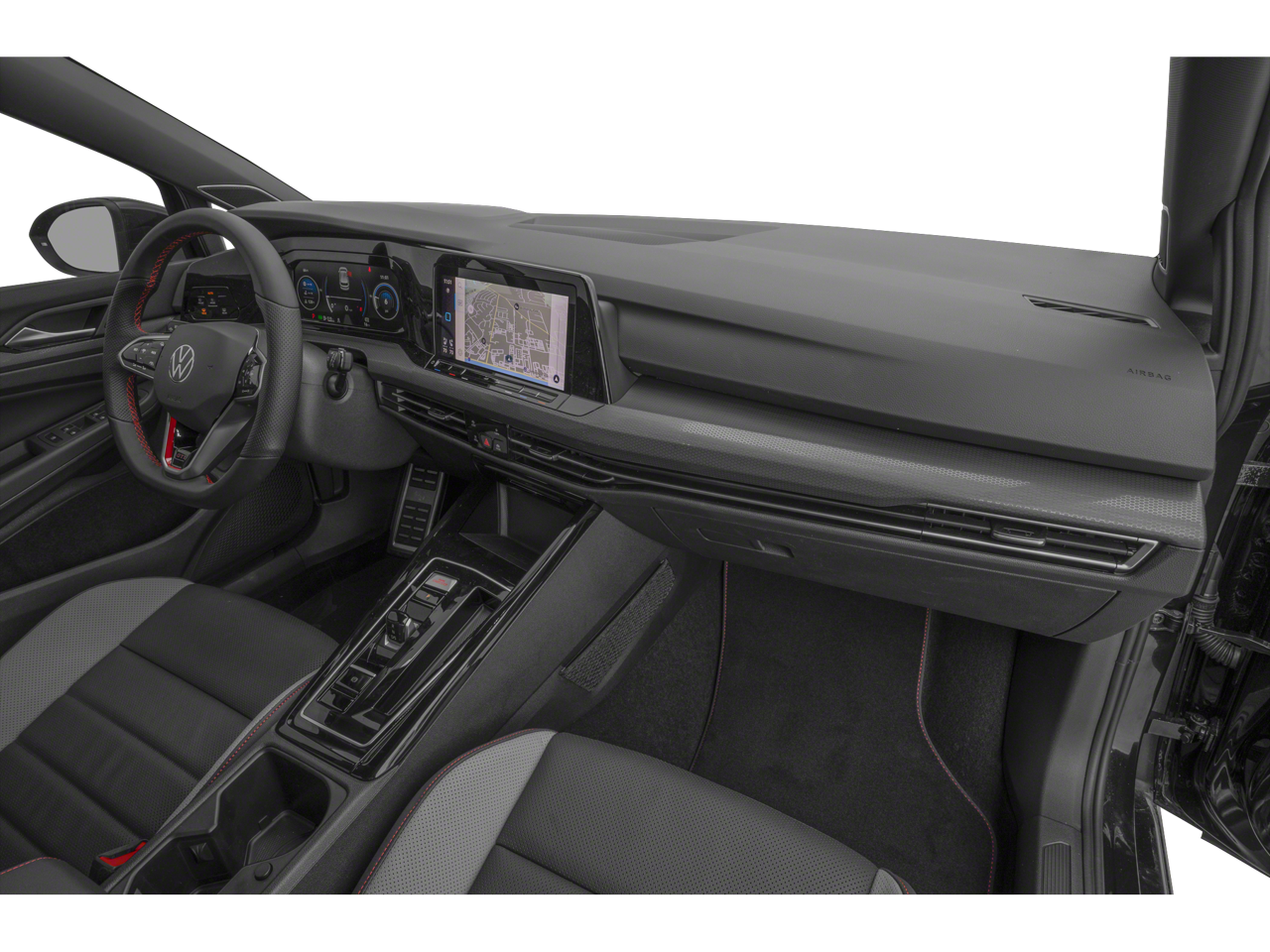 This Golf GTI is well equipped with MDO Package (Luggage Net and Rubber Mats Kit), Navigation System, 4-Wheel Disc Brakes, 9 Speakers, ABS brakes, Active Blind Spot Monitor, Adaptive suspension, Air Conditioning, Alloy wheels, AM/FM radio: SiriusXM with 360L, Auto High-beam Headlights, Auto-dimming Rear-View mirror, Auto-Dimming Rearview Mirror w/HomeLink Connect, Automatic temperature control, Brake assist, Bumpers: body-color, Compass, Delay-off headlights, Driver door bin, Driver vanity mirror, Dual front impact airbags, Dual front side impact airbags, Electronic Stability Control, Emergency communication system: VW Car-Net Safe & Secure 5-year, Exterior Parking Camera Rear, Forward collision: FCW w/Autonomous Emergency Braking mitigation, Four wheel independent suspension, Front anti-roll bar, Front Bucket Seats, Front Center Armrest, Front dual zone A/C, Front fog lights, Front reading lights, Fully automatic headlights, harman/kardon Speakers, Heads-Up Display, Heated & Actively Ventilated Front Top Sport Seats, Heated door mirrors, Heated front seats, Heated rear seats, Heated steering wheel, Illuminated entry, Leather steering wheel, Low tire pressure warning, Memory seat, Occupant sensing airbag, Outside temperature display, Overhead airbag, Overhead console, Panic alarm, Passenger door bin, Passenger vanity mirror, Perforated Vienna Leather Seating Surfaces, Power door mirrors, Power driver seat, Power moonroof: Panoramic, Power passenger seat, Power steering, Power windows, Radio data system, Radio: MIB3 Discover Pro w/10" Touchscreen Navi, Rain sensing wipers, Rear air conditioning, Rear anti-roll bar, Rear reading lights, Rear seat center armrest, Rear window defroster, Rear window wiper, Remote keyless entry, Security system, Speed control, Speed-sensing steering, Speed-Sensitive Wipers, Split folding rear seat, Spoiler, Sport steering wheel, Steering wheel mounted audio controls, Tachometer, Telescoping steering wheel, Tilt steering wheel, Traction control, Trip computer, Turn signal indicator mirrors, Variably intermittent wipers, Ventilated front seats, VW Care, and Wheels: 19" 2-Tone Diamond-Turned Alloy.
