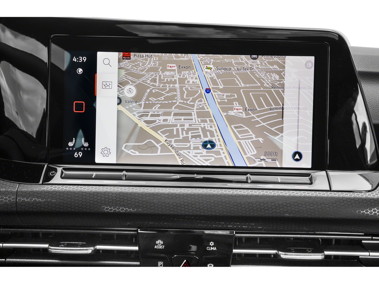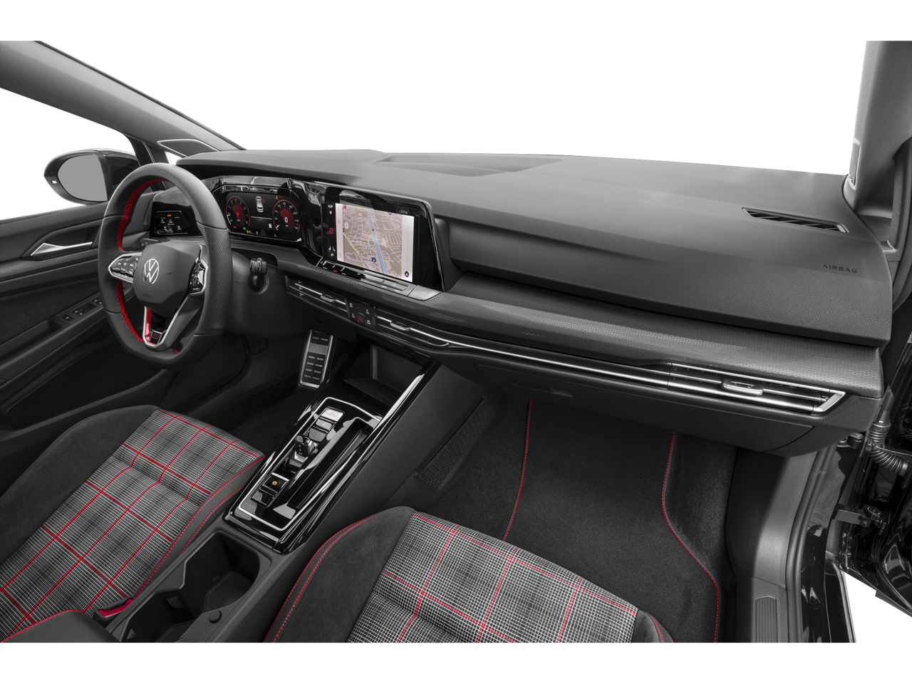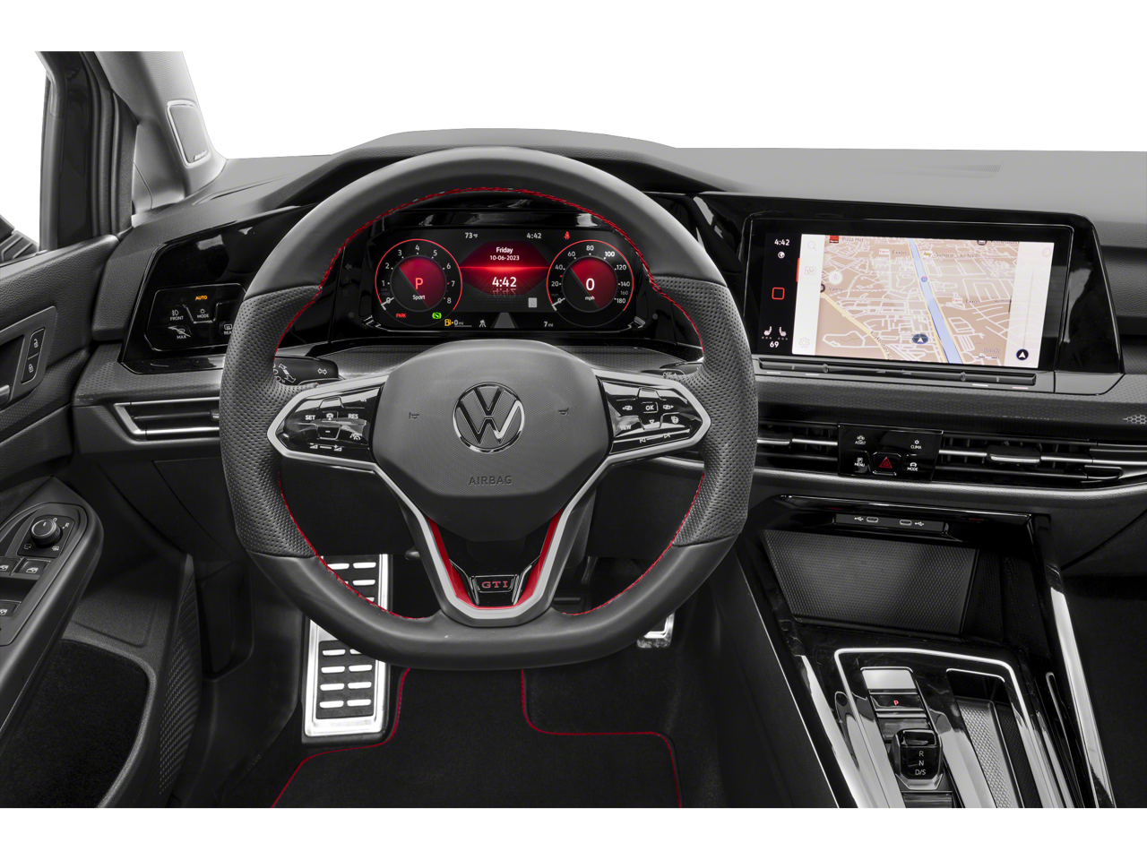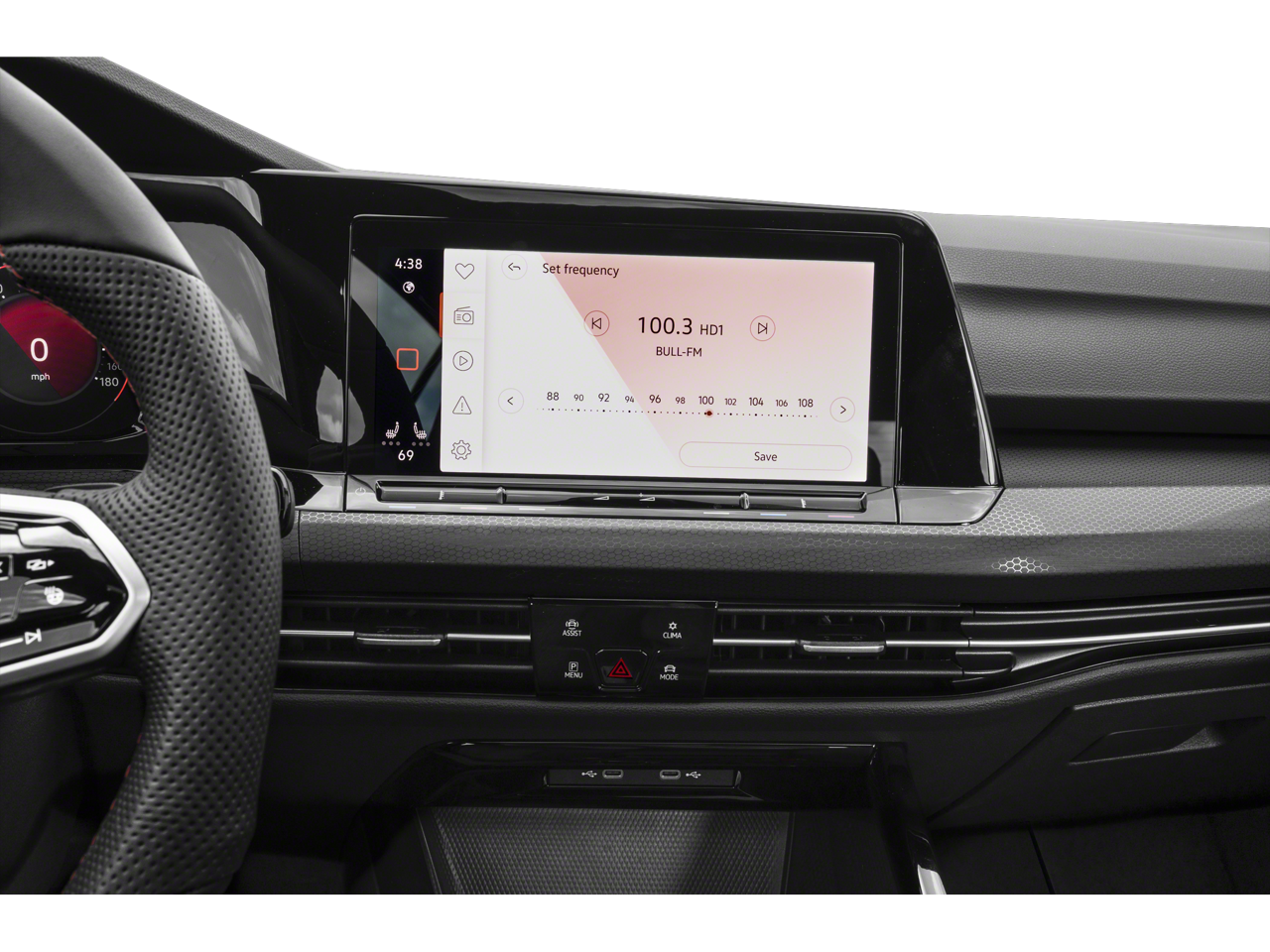 This Golf GTI is well equipped with Navigation System, 4-Wheel Disc Brakes, 9 Speakers, ABS brakes, Air Conditioning, Alloy wheels, AM/FM radio: SiriusXM with 360L, Auto-dimming Rear-View mirror, Automatic temperature control, Brake assist, Bumpers: body-color, Cloth Seating Surfaces, Compass, Delay-off headlights, Driver door bin, Driver vanity mirror, Dual front impact airbags, Dual front side impact airbags, Electronic Stability Control, Emergency communication system: VW Car-Net Safe & Secure 5-year, Exterior Parking Camera Rear, Forward collision: FCW w/Autonomous Emergency Braking mitigation, Four wheel independent suspension, Front anti-roll bar, Front Bucket Seats, Front Center Armrest, Front fog lights, Front reading lights, Fully automatic headlights, harman/kardon Speakers, Heated door mirrors, Heated front seats, Heated Front Top Sport Seats, Heated steering wheel, Illuminated entry, Lane Departure Warning System, Leather steering wheel, Low tire pressure warning, Occupant sensing airbag, Outside temperature display, Overhead airbag, Overhead console, Panic alarm, Passenger door bin, Passenger vanity mirror, Power door mirrors, Power driver seat, Power moonroof: Panoramic, Power passenger seat, Power steering, Power windows, Radio data system, Radio: MIB3 Discover Pro w/10" Touchscreen Navi, Rain sensing wipers, Rear anti-roll bar, Rear reading lights, Rear seat center armrest, Rear window defroster, Rear window wiper, Remote keyless entry, Security system, Speed control, Speed-sensing steering, Speed-Sensitive Wipers, Split folding rear seat, Spoiler, Sport steering wheel, Steering wheel mounted audio controls, Tachometer, Telescoping steering wheel, Tilt steering wheel, Traction control, Trip computer, Turn signal indicator mirrors, Variably intermittent wipers, and Wheels: 18" 2-Tone Machined Alloy.