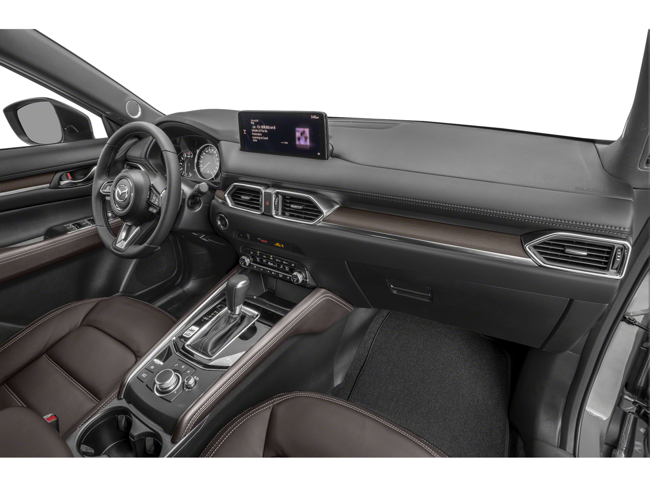 This Mazda CX-5 is well equipped with Roof Rails & Cross Bars Package, 10 Speakers, 4-Wheel Disc Brakes, ABS brakes, Air Conditioning, All-Weather Floor Mats, Alloy wheels, AM/FM radio: SiriusXM, AppLink/Apple CarPlay and Android Auto, Auto High-beam Headlights, Auto-dimming Rear-View mirror, Automatic temperature control, Brake assist, Bumpers: body-color, Delay-off headlights, Driver door bin, Driver vanity mirror, Dual front impact airbags, Dual front side impact airbags, E911 Automatic Emergency Notification, Electronic Stability Control, Emergency communication system: MAZDA CONNECT, First Aid Kit, Four wheel independent suspension, Front anti-roll bar, Front Bucket Seats, Front Center Armrest w/Storage, Front dual zone A/C, Front reading lights, Fully automatic headlights, Garage door transmitter: HomeLink, Genuine wood dashboard insert, Genuine wood door panel insert, Heads-Up Display, Heated door mirrors, Heated front seats, Heated rear seats, Heated steering wheel, Heated/Ventilated Front Bucket Seats, Illuminated entry, Infotainment System Voice Command, Leather Shift Knob, Leather steering wheel, Low tire pressure warning, Machine Gray Metallic Paint, Mazda Navigation System, Memory seat, Multifunction Commander Control, Nappa Leather Seat Trim, Navigation system: MAZDA CONNECT, Occupant sensing airbag, Outside temperature display, Overhead airbag, Overhead console, Pandora, Panic alarm, Passenger door bin, Passenger vanity mirror, Power door mirrors, Power driver seat, Power Liftgate, Power moonroof, Power passenger seat, Power steering, Power windows, Radio Broadcast Data System Program Information, Radio data system, Radio: AM/FM/HD Audio System, Rain sensing wipers, Rear anti-roll bar, Rear Bumper Guard, Rear reading lights, Rear seat center armrest, Rear window defroster, Rear window wiper, Remote keyless entry, SMS Text Msg Audio Delivery & Reply, Speed control, Speed-sensing steering, Split folding rear seat, Spoiler, Steering wheel mounted audio controls, Tachometer, Telescoping steering wheel, Tilt steering wheel, Traction control, Trailer Hitch w/Harness & Cover, Trip computer, Turn signal indicator mirrors, Variably intermittent wipers, Ventilated front seats, Wheel Locks, and Wheels: 19" x 7J Aluminum Alloy.